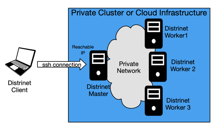 Distrinet provides an infrastructure provisioning mechanism that automatically installs and configures LXD and SSH on each machine to be used during the experiment by means of Ansible. Distrinet can be used in a large variety of experimental infrastructures (e.g., a single computer, a pool of Linux machines, the Grid’5000 testbed, the Amazon EC2 cloud platform).